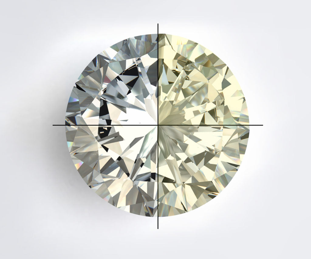 Color refers to how white (or colorless) a stone appears to be, as this is a marker of rarity, beauty and value. The grading scale for diamond color is between D (whitest) and Z (least white). Colorless diamonds are very rare – only about 1 percent in the world qualify — and range from D, E, and F grade. Near-colorless stones ranging between G and J grade are also quite valuable. Natural Color Diamonds occur in nature in a variety of stunning colors including yellow, blue, pink, orange, green, and red. These rare stones offer an aura of sophistication unrivaled by any other gemstone, and are considered the epitome of luxury.